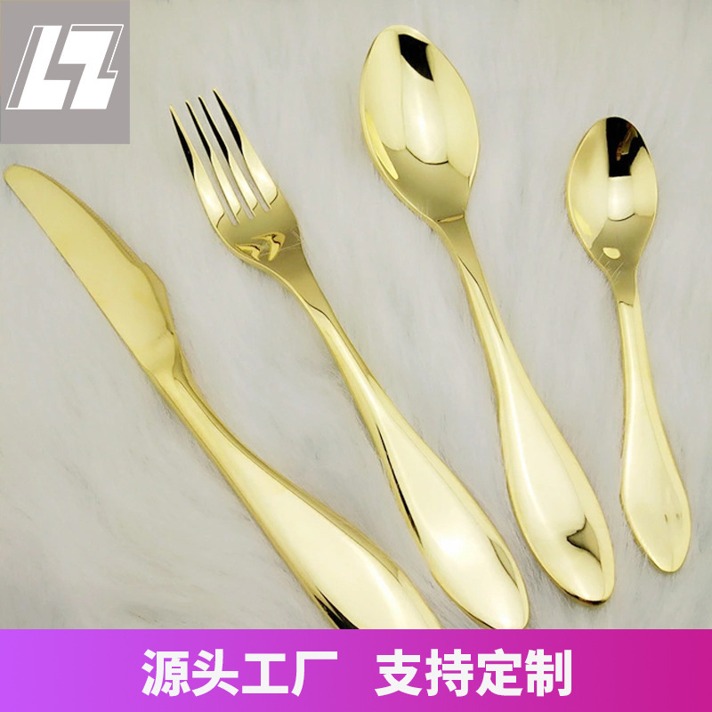 德系高档镀金不锈钢刀叉勺三件套 餐厅酒店用品餐具套装厂家批发