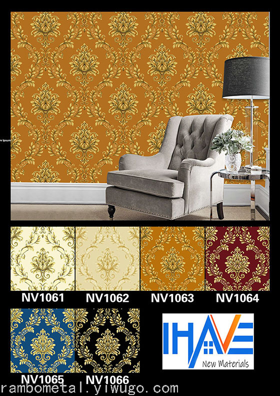 墙纸 PVC墙纸 金色大花,凹凸感 仿皮革纹豪华墙纸