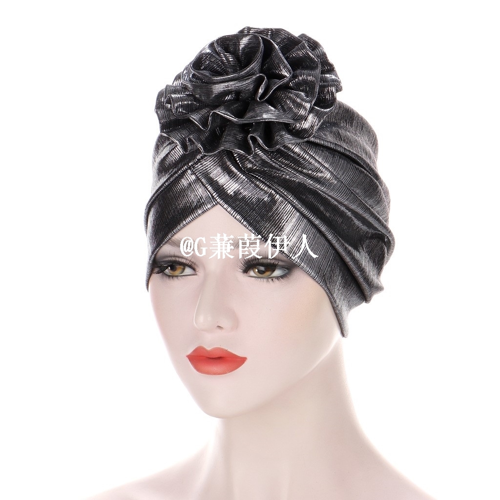 亮丝皱前额头花朵头巾帽穆斯林包头帽民族时装帽化疗帽