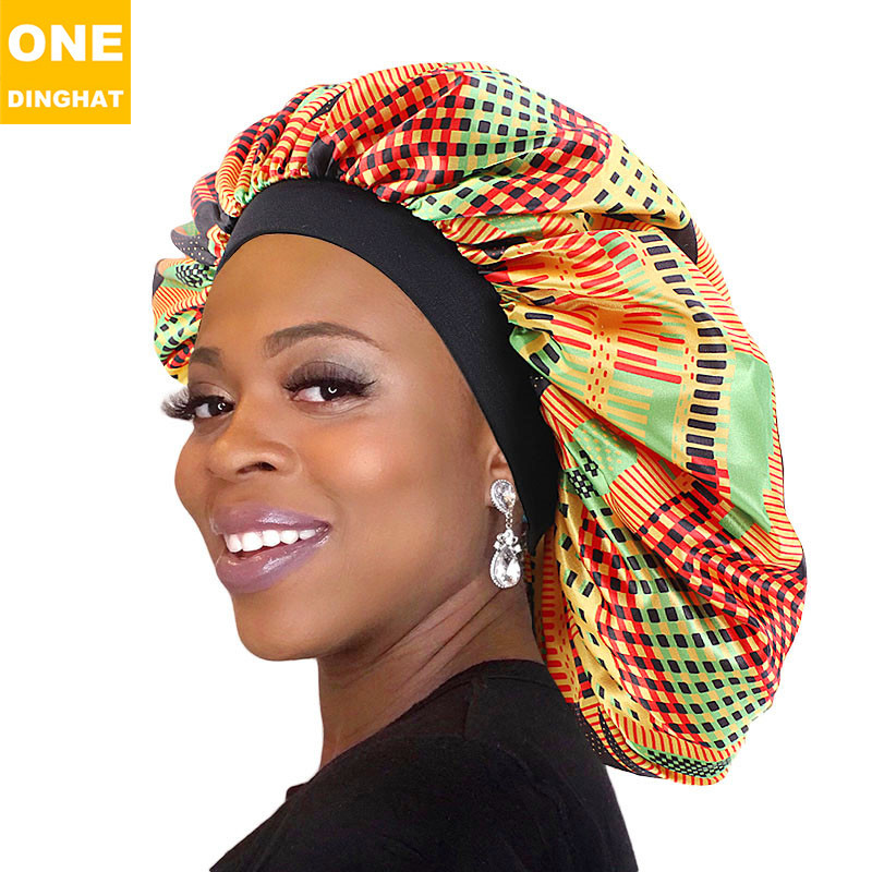 特大号非洲风印花色丁圆帽 弹力睡帽 仿真丝化疗帽 跨境电商专供