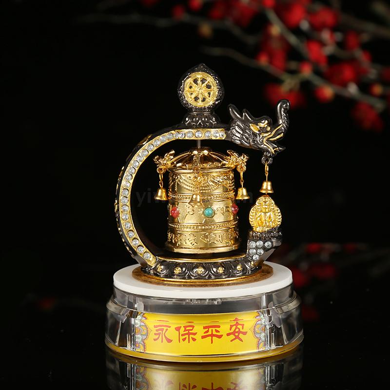 新款汽车摆件厂家直销金属摆饰龙头转金筒祈福保平安车内饰品批发