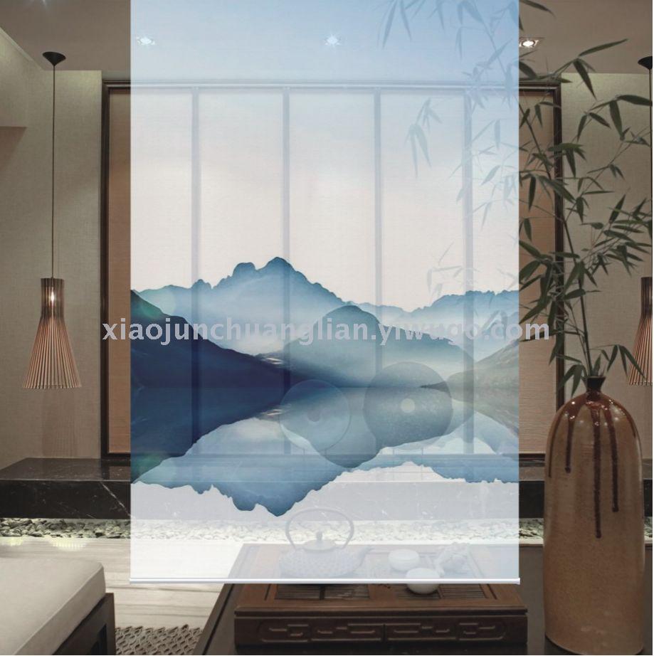卷帘窗帘遮光手拉山水风景画客厅挂画卷拉式升降帘