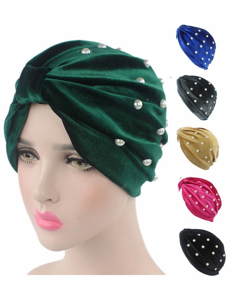 新款满天星珍珠头巾帽 金丝绒印度帽 时尚流行头饰帽子