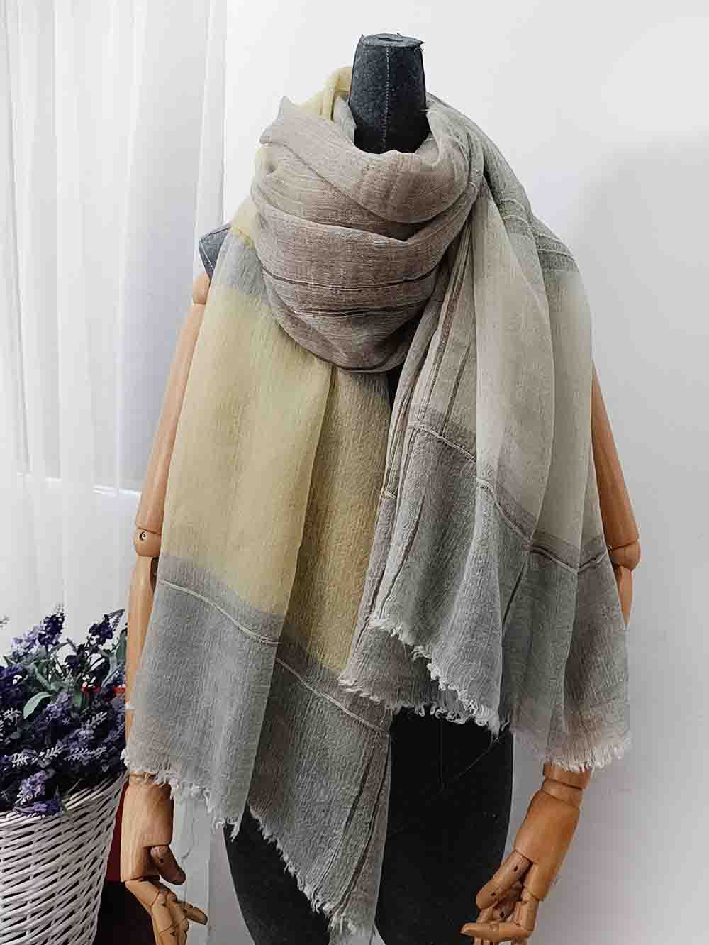新款秋冬韩版轻薄羊毛围巾丝巾女保暖百搭格子时尚短须披肩