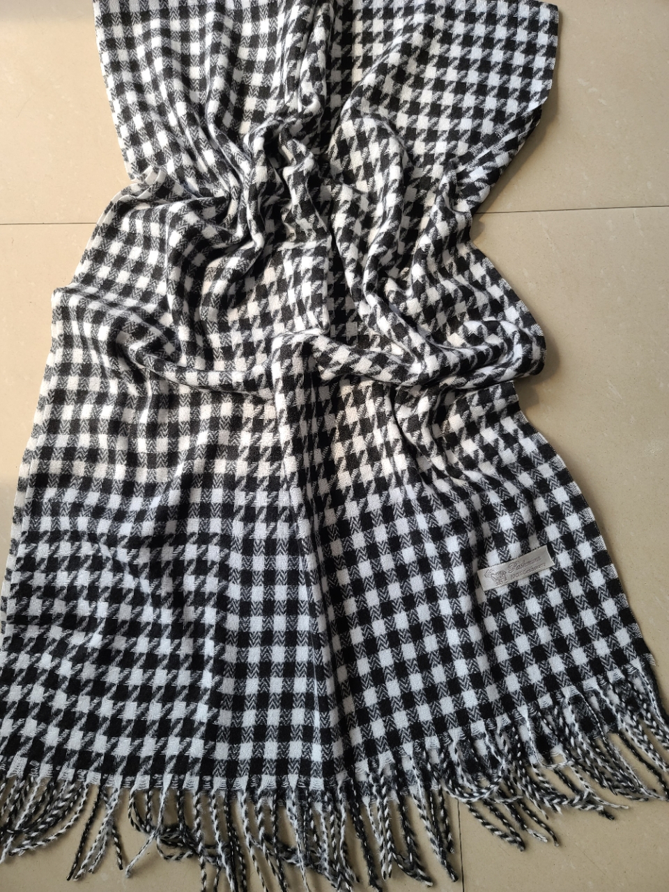 韩版女秋冬款羊绒千鸟格拉毛围巾时尚披肩