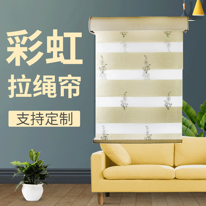 全遮光透气绣花彩虹帘拉绳百叶帘居家写字楼卷帘窗帘日夜帘定制