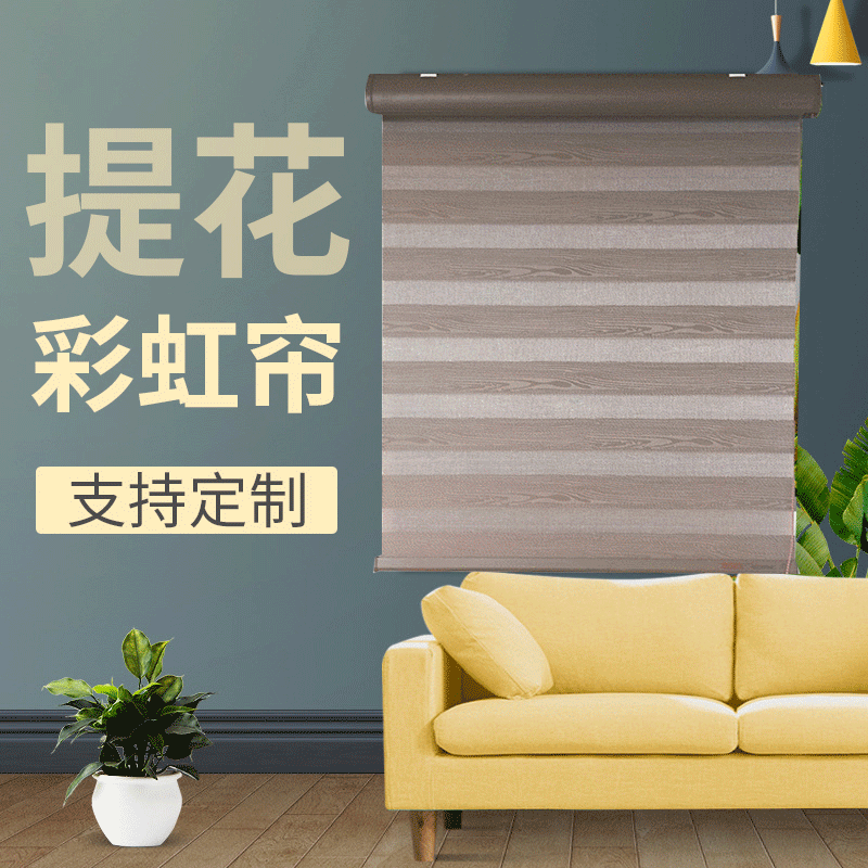 应提花彩虹窗帘遮光拉珠卷帘办公室书房窗帘布定制批发