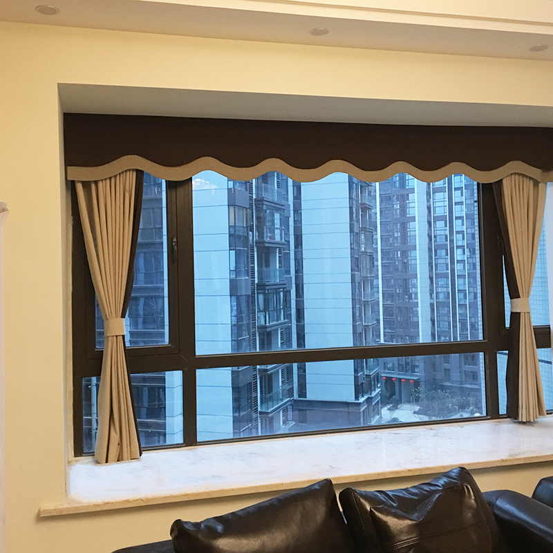 米色纯色棉麻美式窗帘定制厚新中式拼色撞色帘头客厅卧室