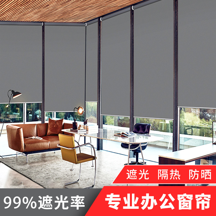 工程办公室卷帘防晒窗帘卷帘遮阳手动卷帘窗隔热全遮光卷帘百叶帘