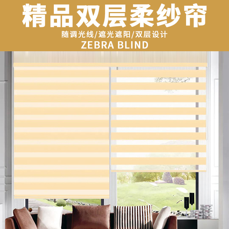 单色双层手动遮光窗帘柔纱帘卷帘工程办公室遮阳百叶窗帘柔纱帘