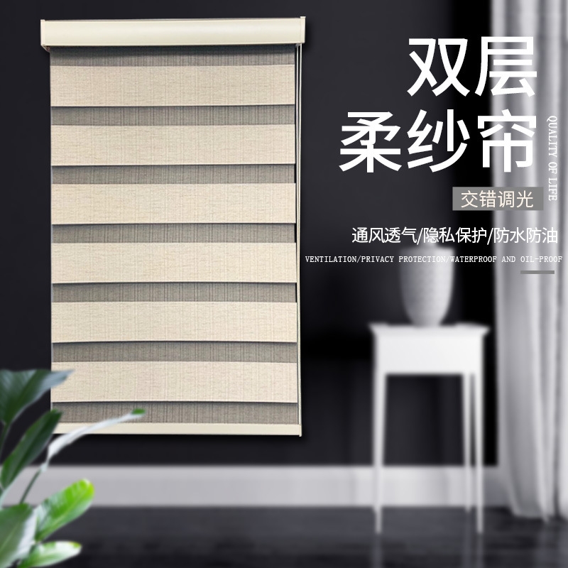 柔纱帘卷帘遮光窗帘百叶窗帘卷拉式升降免打孔电动全遮光窗帘