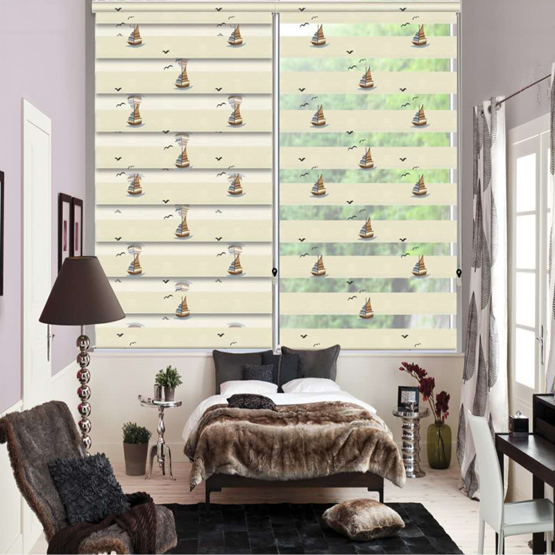 厂家直销新款卡通绣花儿童柔纱帘百叶帘早教幼儿园商用日夜帘窗帘
