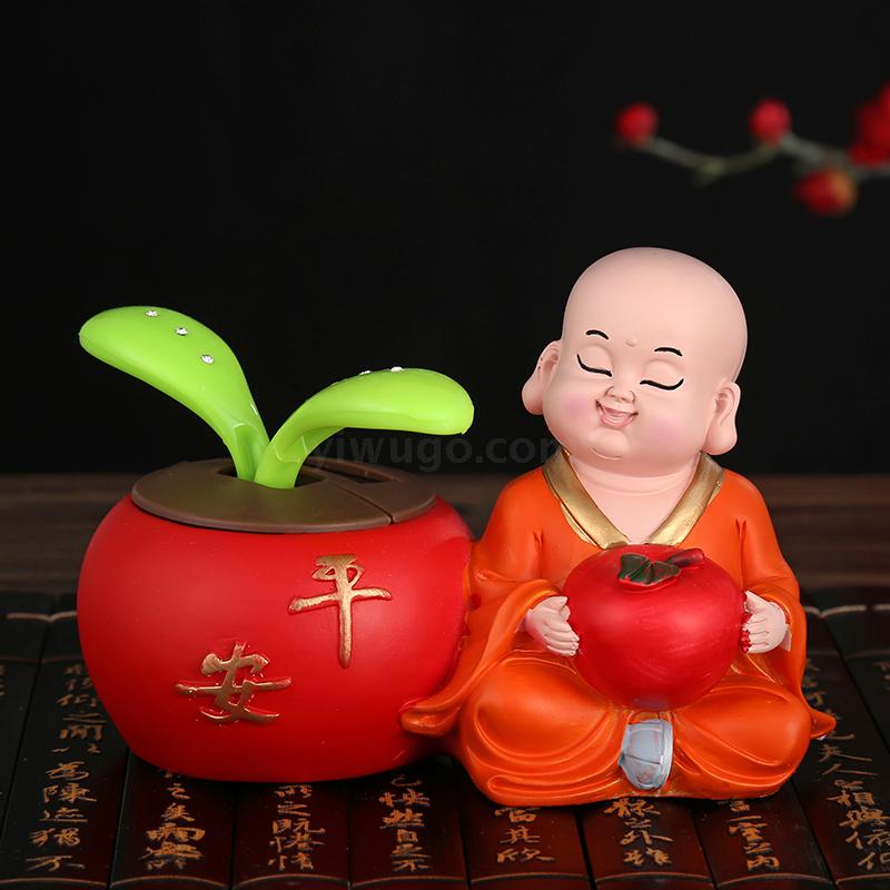 卡通创意汽车摆饰保平安摇叶小和尚摆件车载高档装饰用品现货批发