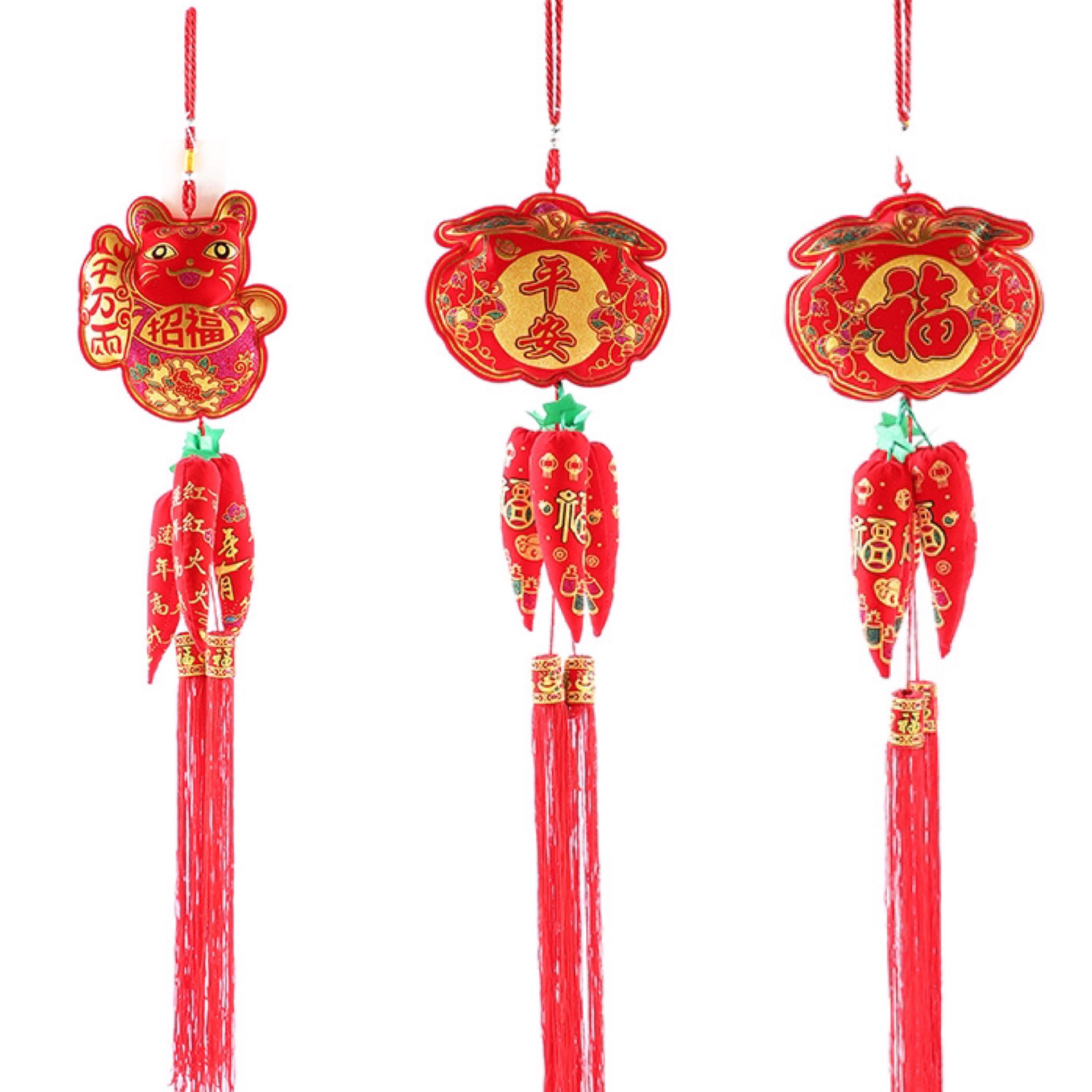 源头工厂中国结挂件春节装饰招财猫辣椒挂件流苏中国特色装饰批发