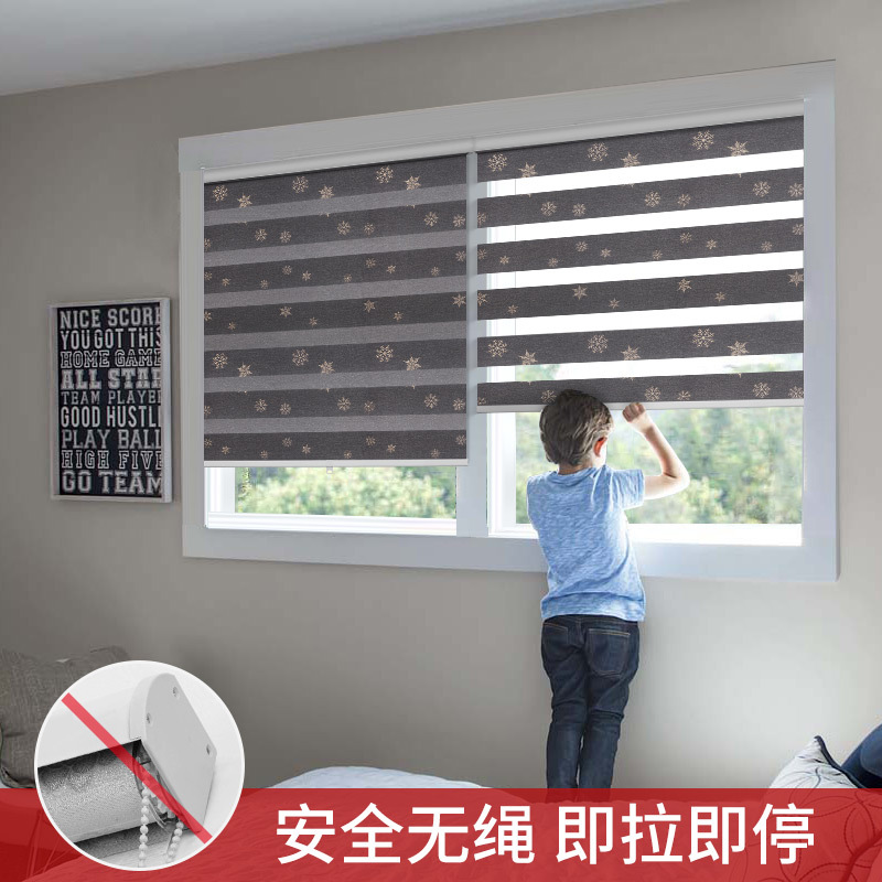 无绳柔纱帘卷拉式窗帘雪花提花卷帘遮阳透景手拉式时尚斑马帘