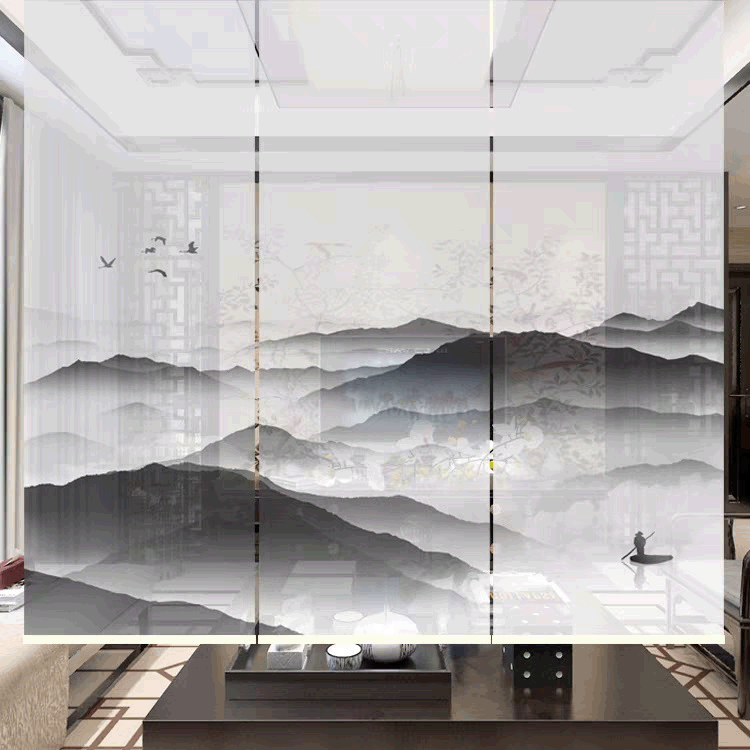 定制中式禅意古典现代轻奢半遮光窗帘 山水画隔断茶室透景纱卷帘