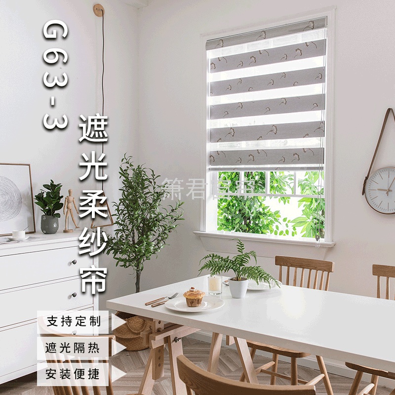 柔纱帘窗帘新中式全遮光帘双层银杏提花绣花卷帘厨房客厅百叶帘