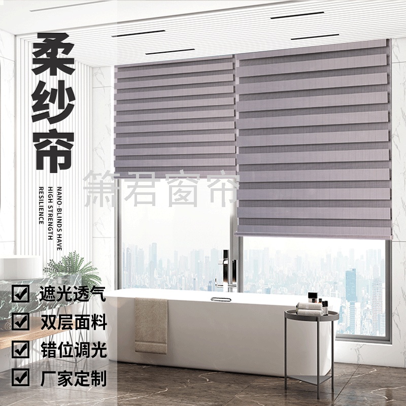 新款简约定制遮光窗帘透气窗纱柔纱帘百叶帘卧室厨房办公室卷帘