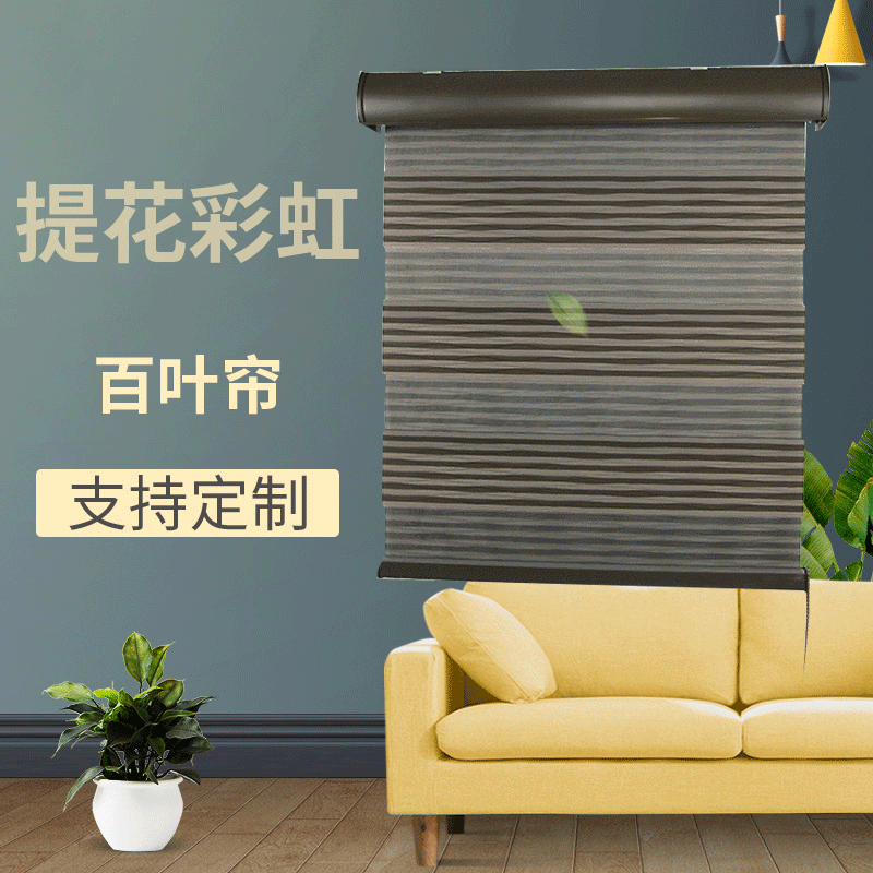 厂家供应褶皱提花彩虹窗帘遮光透气拉珠卷帘书房办公室百叶窗定制