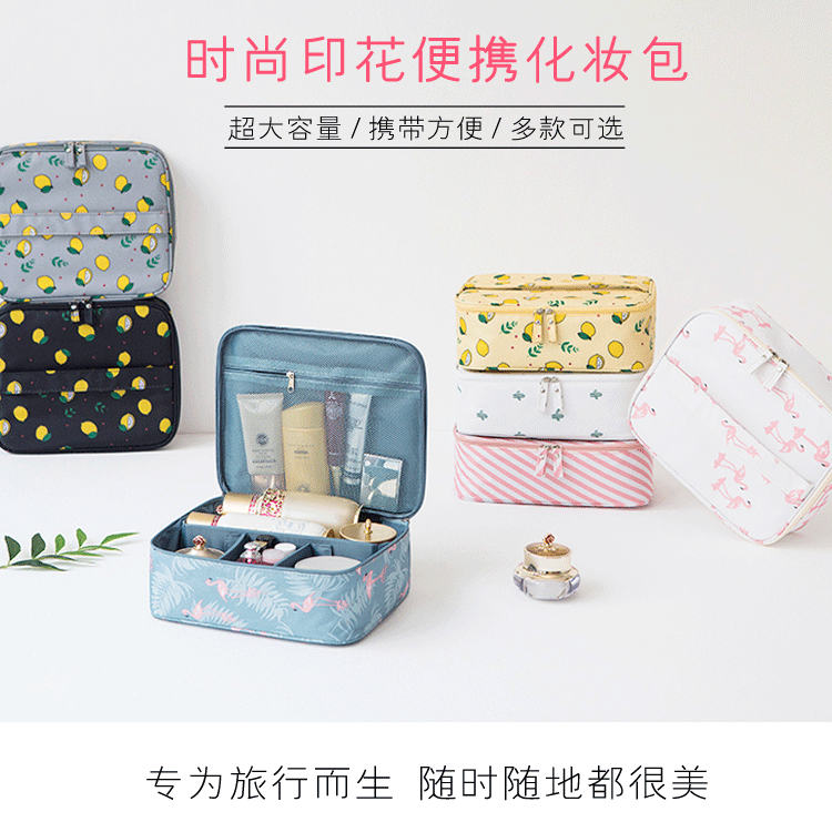 韩式简约化妆包 旅行手提式收纳包 AB款便携多功能防水隔层洗漱包