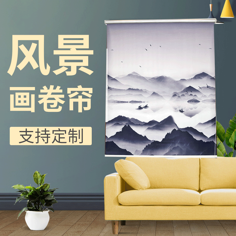 风景画北欧样式卷帘 全遮光透景纱拉珠窗帘 卷帘支持加工定制