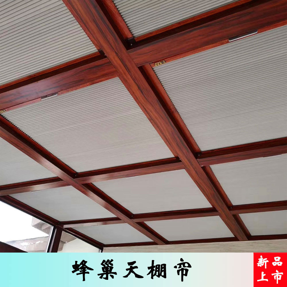 阳光房遮阳顶帘电动天棚帘全遮光天窗手动蜂巢帘玻璃房阳台蜂窝帘