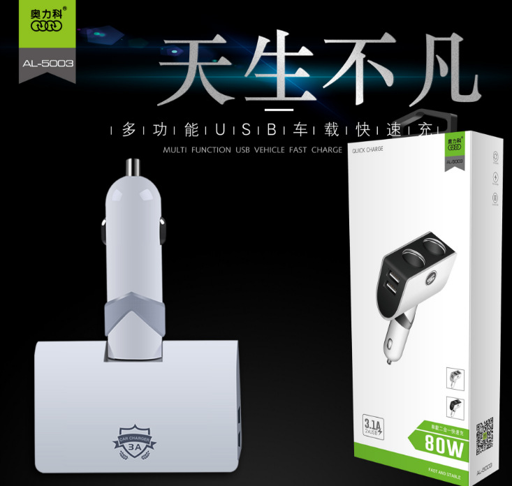 直插型车载点烟器两孔两usb汽车电源分配器3A快速充电器汽车用品