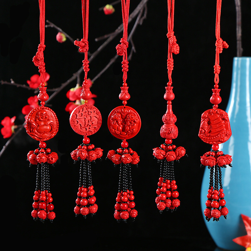 车载内饰挂件红色朱砂汽车流苏车挂后视镜汽车装饰挂件 汽车用品