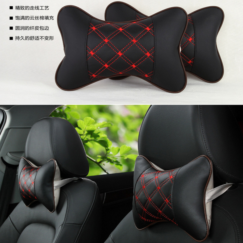 批发酒红头枕汽车颈枕 皮革全四季 汽车头枕 夏季冰丝枕汽车用品