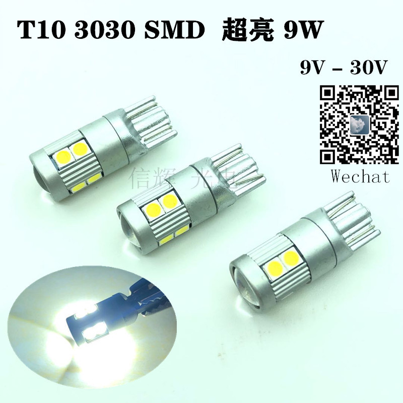 新款T10超亮示宽灯9W无极恒流宽压9V到30V通用3030灯珠透镜汽车灯