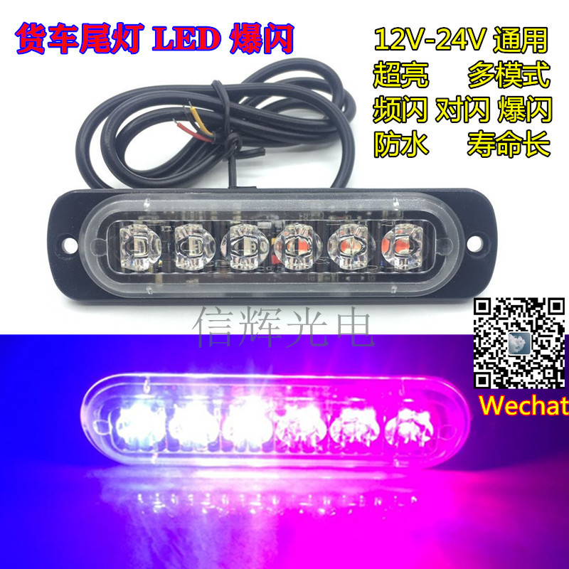 货车led爆闪尾灯24V红蓝对闪警示灯超亮刹车灯闪光装饰灯防水边灯