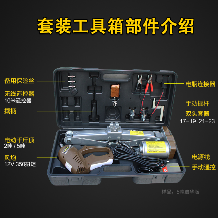 车载12V豪华型电动剪式千斤顶2T5T遥控 电动轮胎套筒扳手