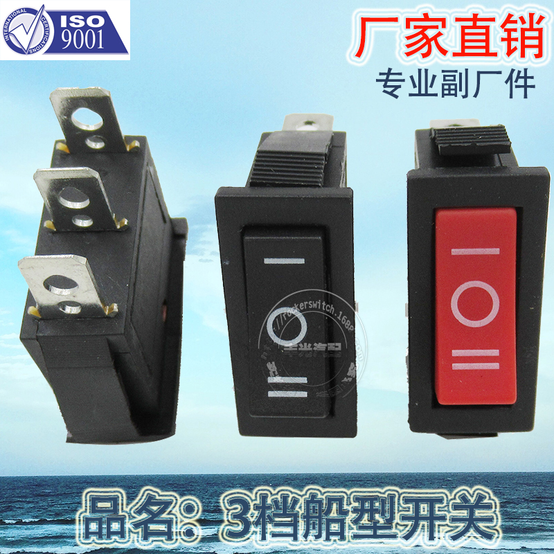 厂家直销 3插脚ON-OFF-ON船型开关电源控制开关3档开关KCD3-103