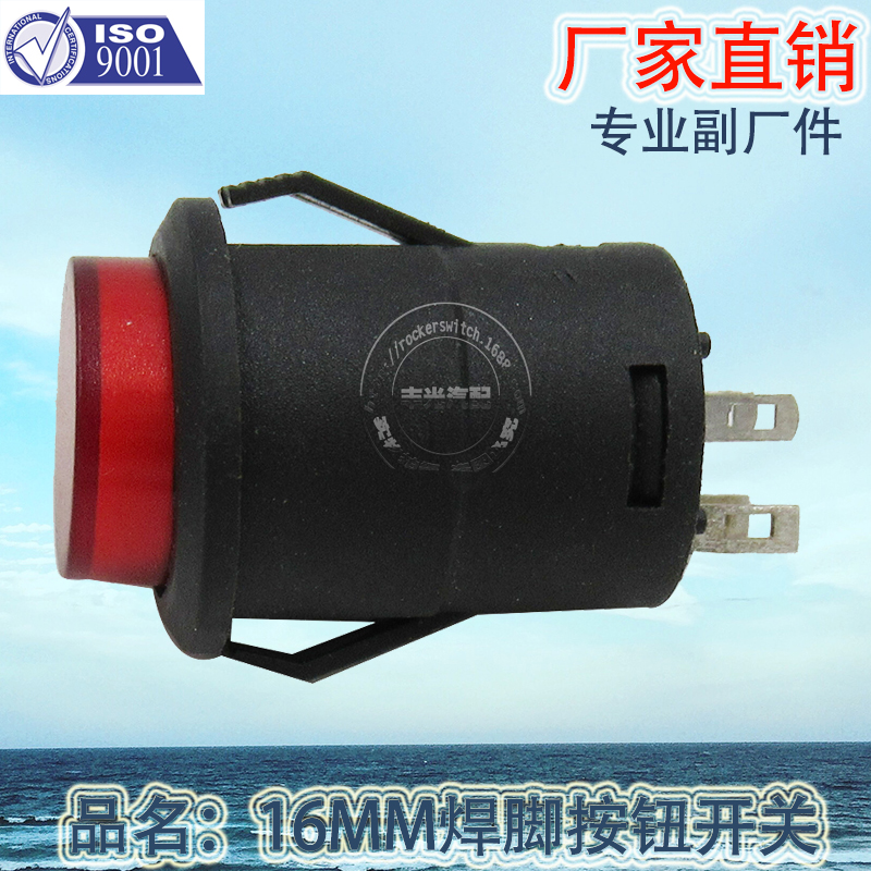 厂家直销 按钮开关16MM焊脚按钮开关自锁卡扣式按钮开关R16-503-K