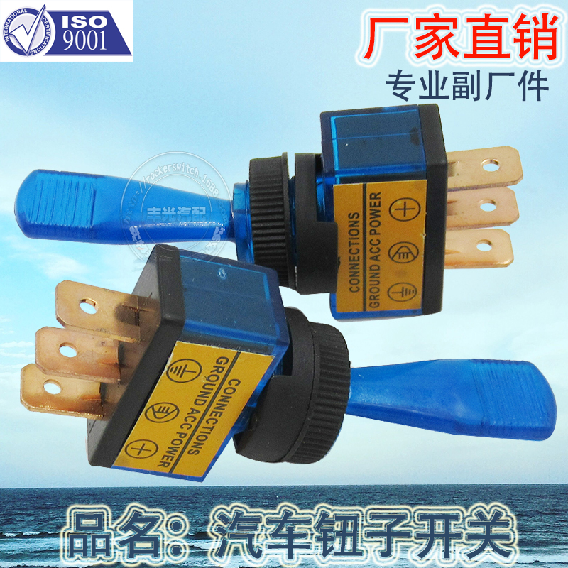 厂家直销 ON-OFF汽车钮子开关车用带灯汽车钮子3插脚蓝色ASW-13D
