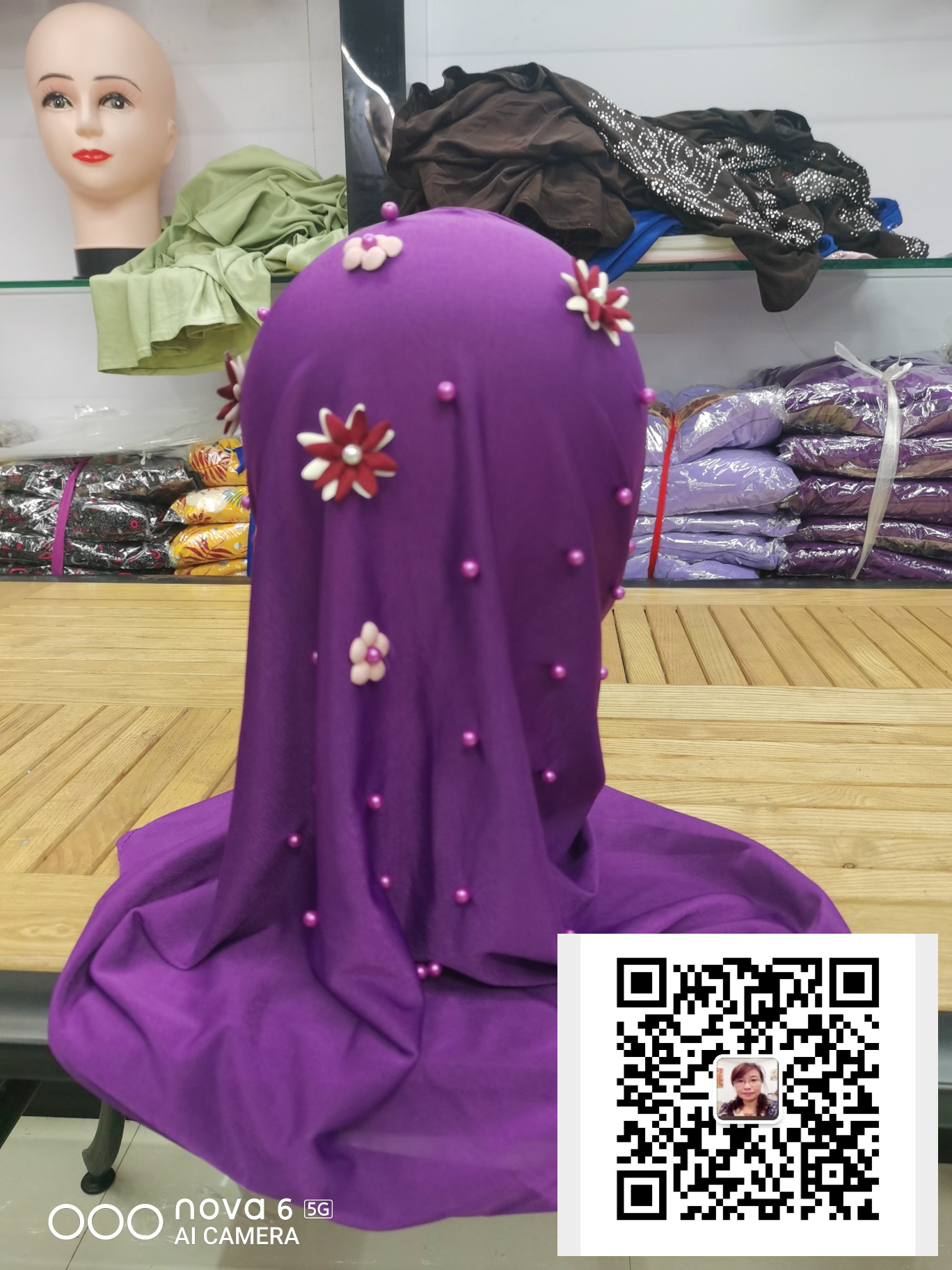外贸热销穆斯林小孩冰丝贴花片定珍珠烫钻盖头