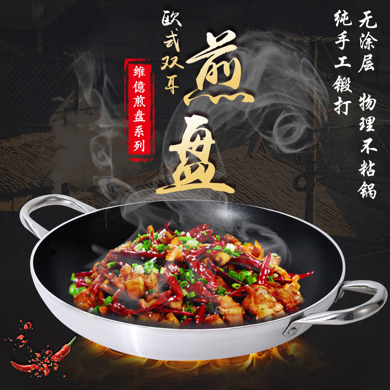 欧式双耳砂光煎盘餐厅厨房专用不粘锅平底锅无涂层炒菜锅厂家直销