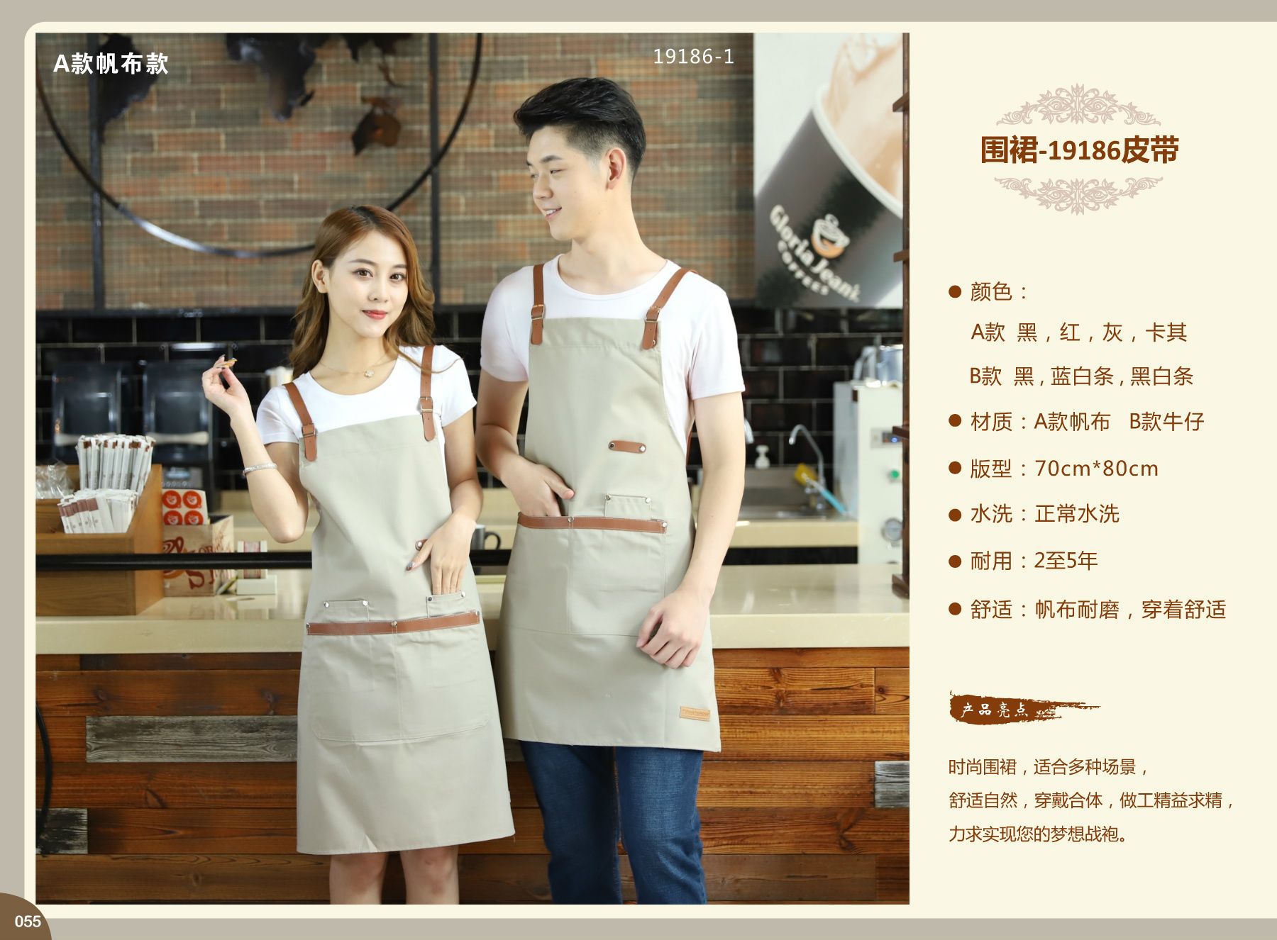 供应咖啡馆服务生围裙商用围裙酒吧酒店前台制服牛仔帆布围裙