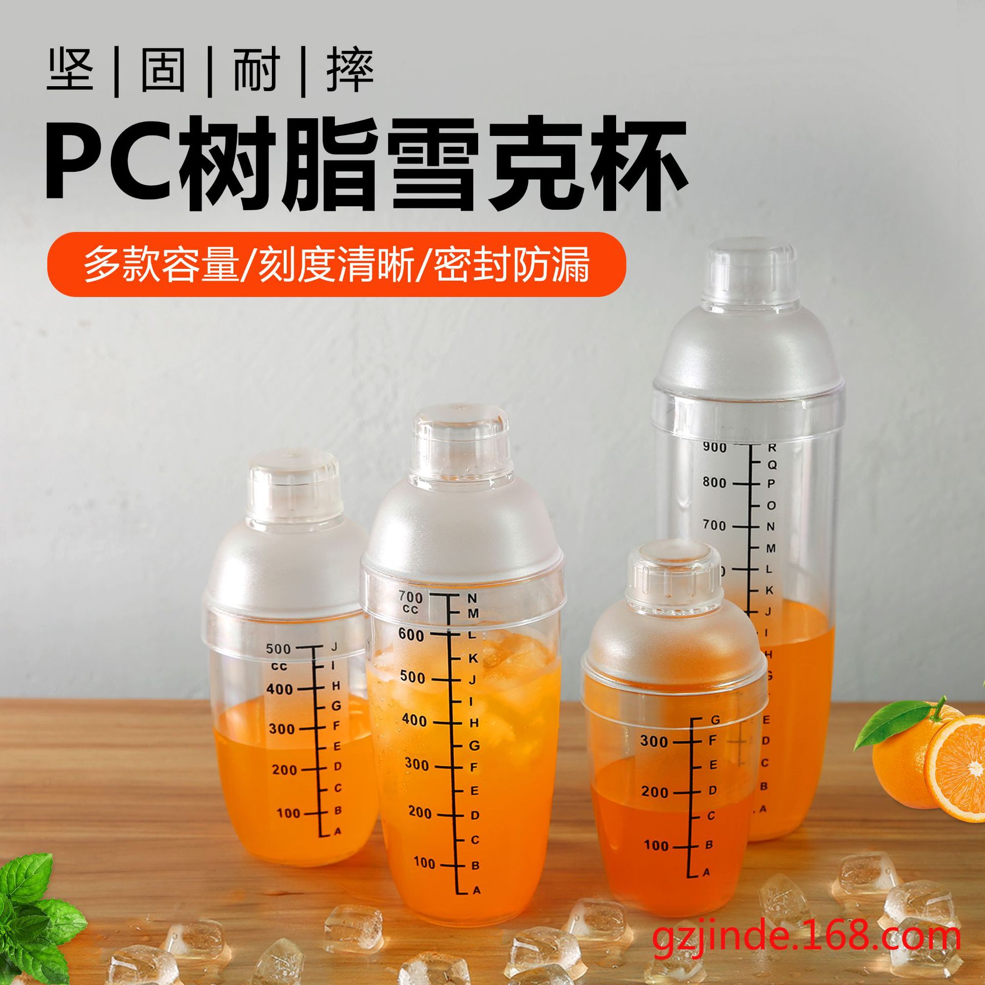 带刻度雪克杯新款透明树脂雪克壶 奶茶店用品奶茶摇杯500ml调酒器