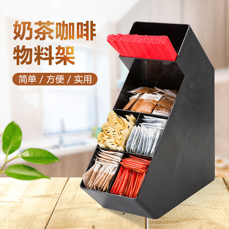咖啡奶茶店吧台收纳盒多个小格子区分分类多功能糖包吸管收纳盒子