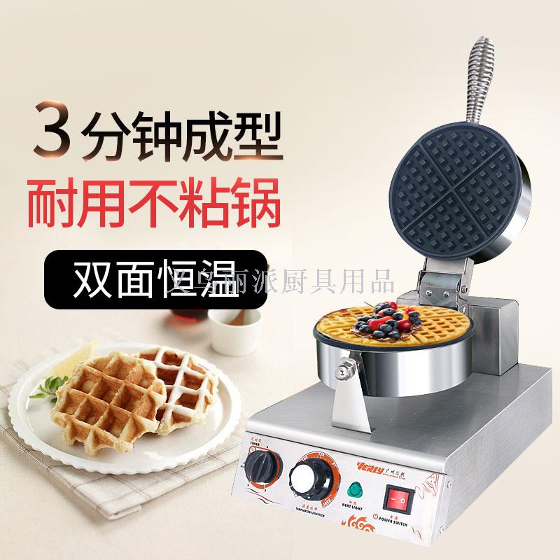 汇利单头烤华夫饼机加厚商用格子饼机双面华夫炉蛋糕店松饼机