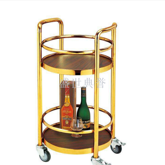 上海星级酒店酒水车 移动服务推车饭店餐厅不锈钢圆形酒水收纳车