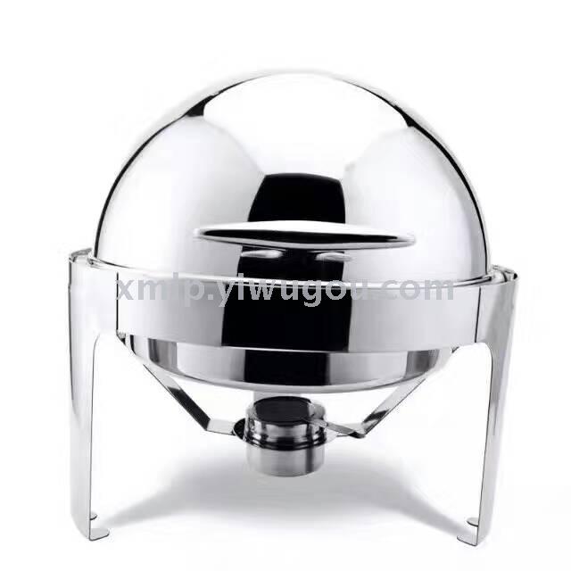 酒店餐具不锈钢全翻盖圆形自助餐炉全钢保温加热布菲炉电热餐具