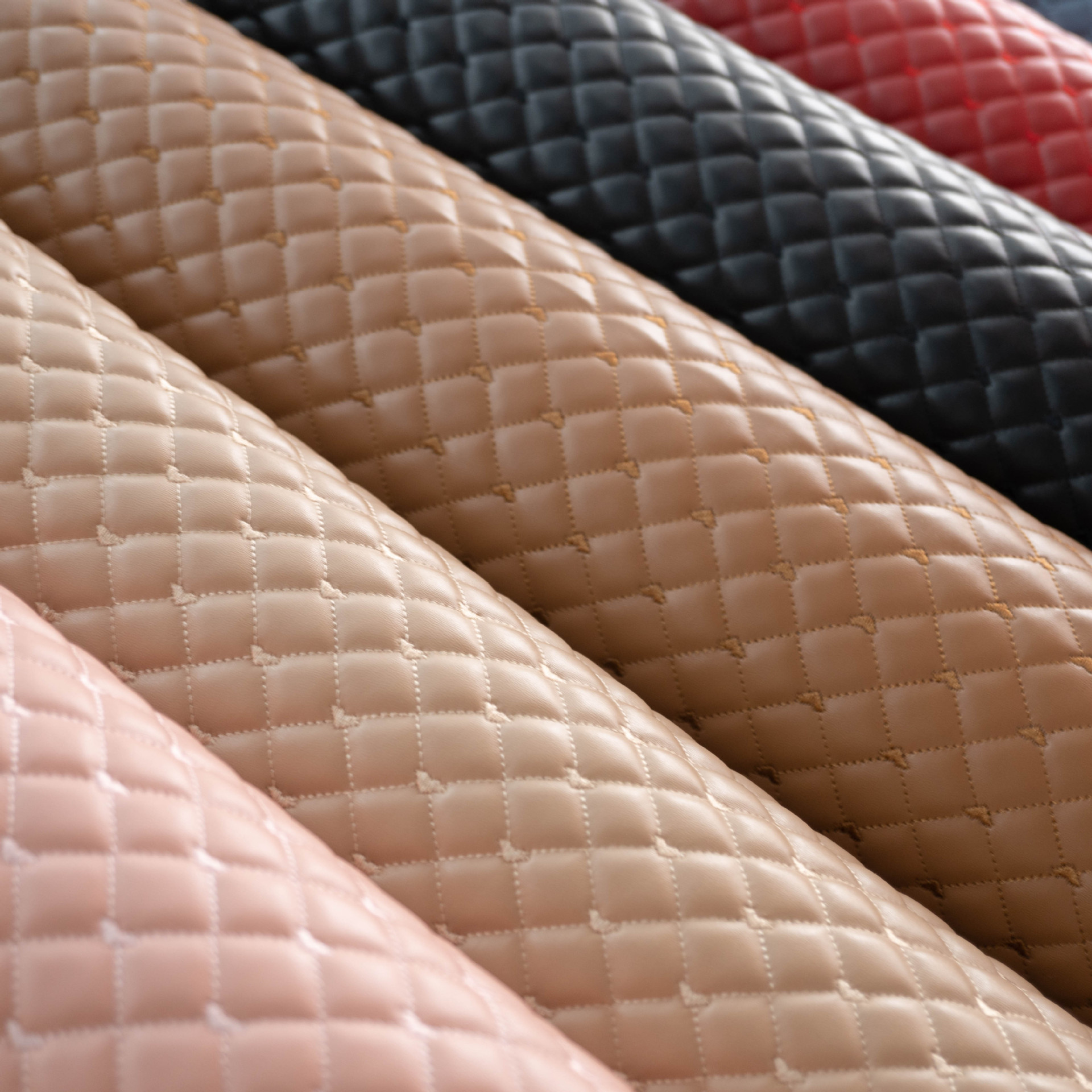 箱包饰品沙发家装卷材装饰画PU小牛纹人造革斜格子爱心绗缝绣花