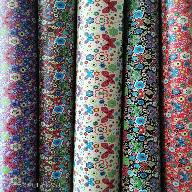 转移印花人造革 大量现货 工厂直销 防水印花PVC 箱包等外包材料