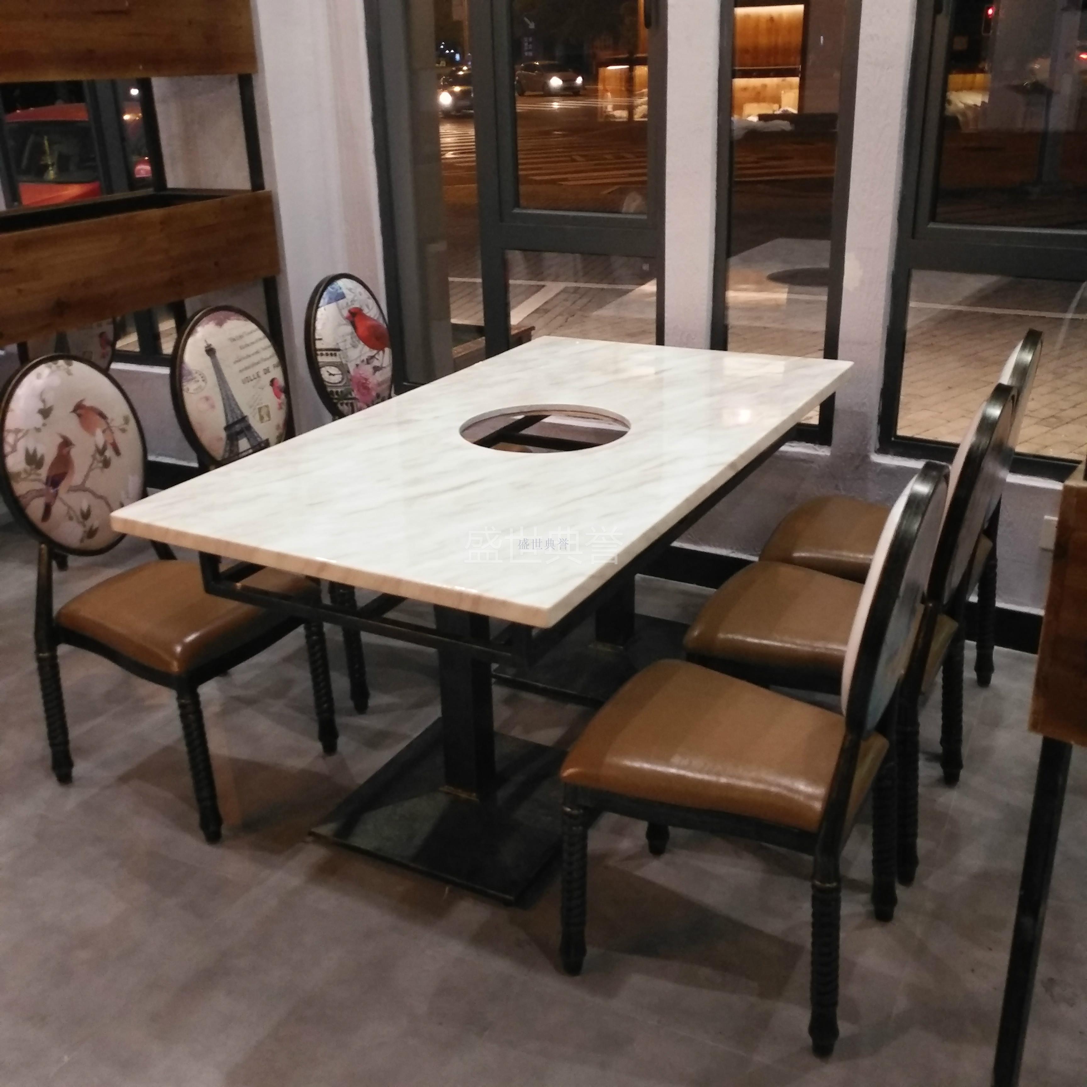 杭州火锅店餐桌椅 大理石餐桌订做 黑色铸铁脚4人餐桌