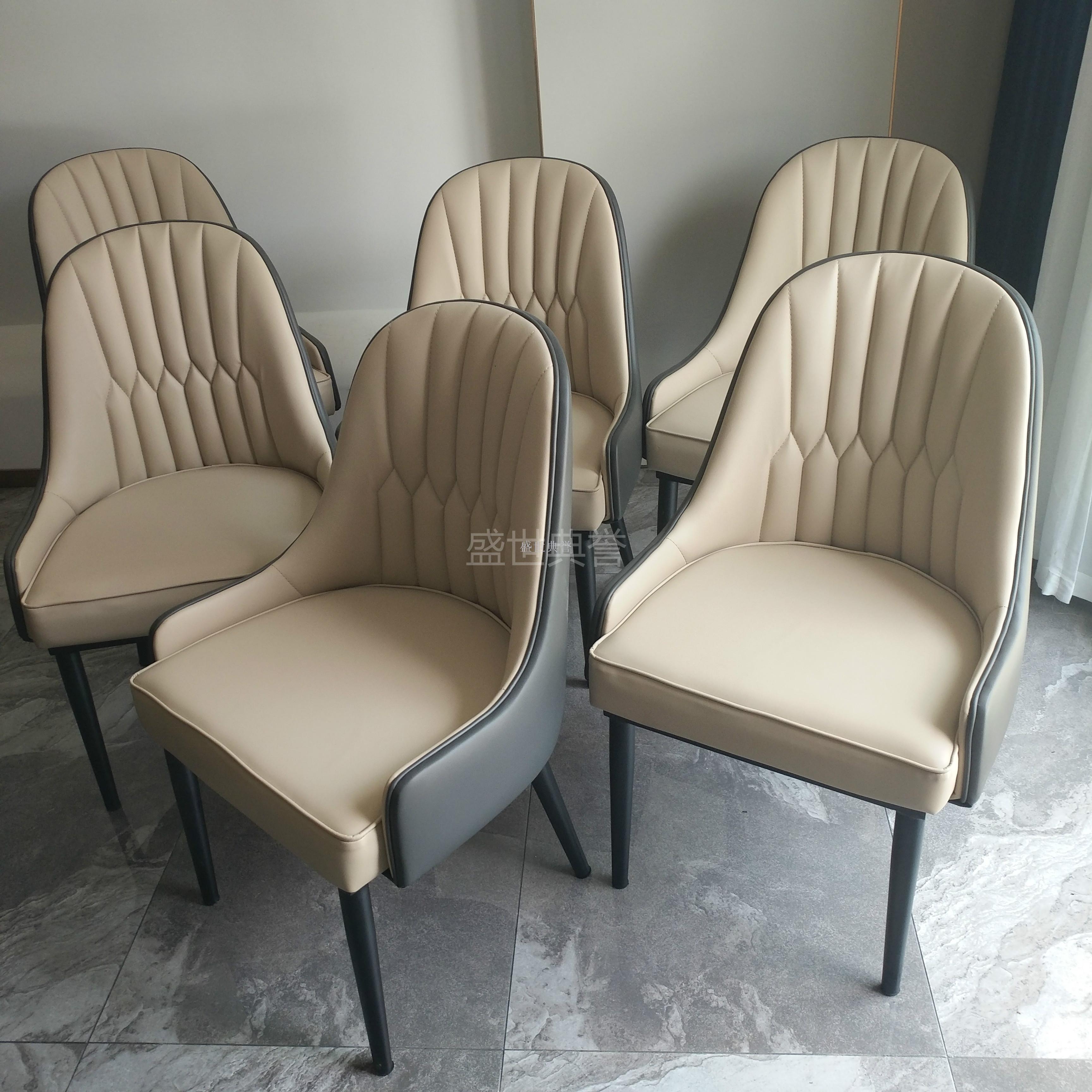上海酒店餐厅现代餐椅 包厢简约轻奢餐桌椅金属仿木椅
