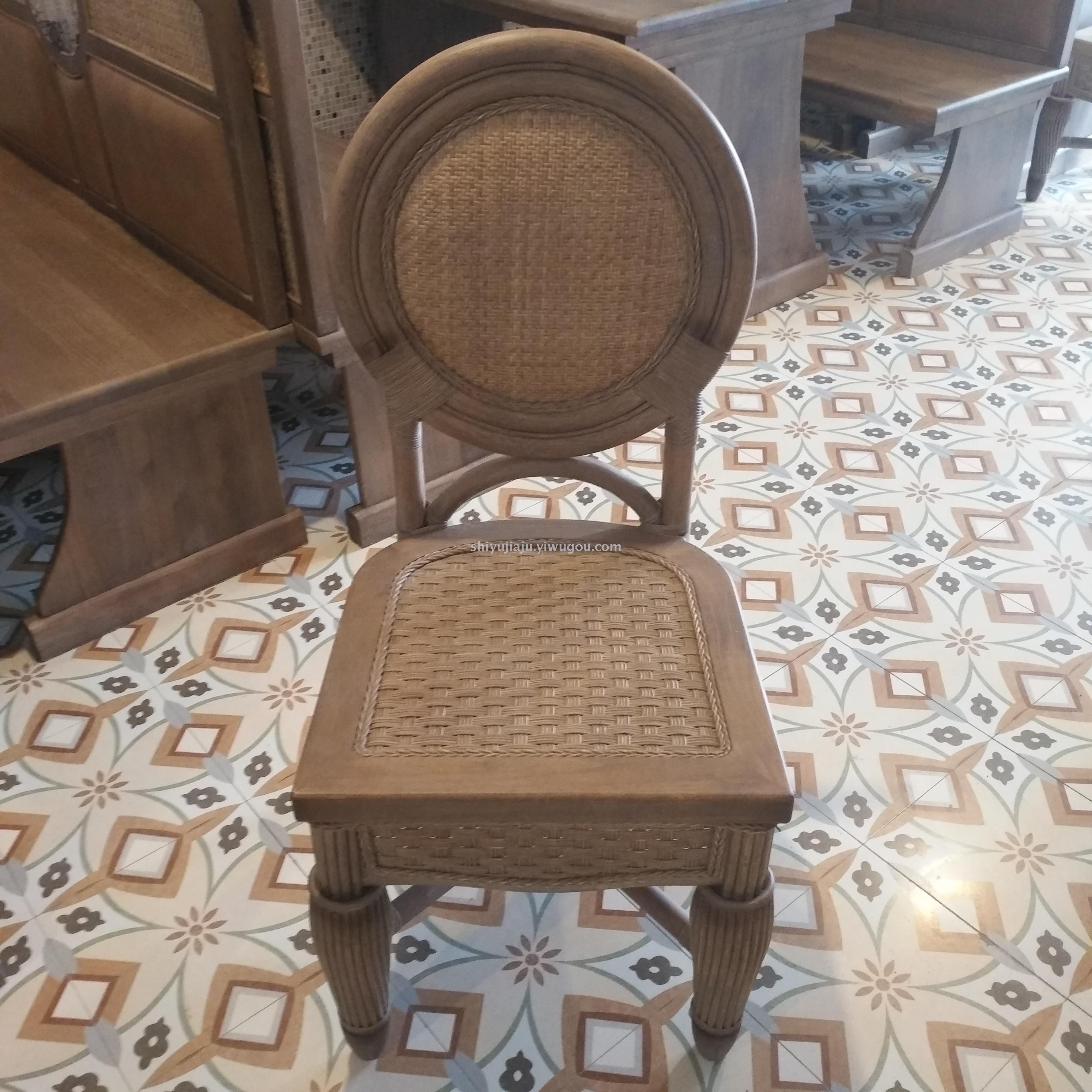 上海餐厅复古藤椅 酒店农庄复古桌椅主题餐厅真藤餐椅