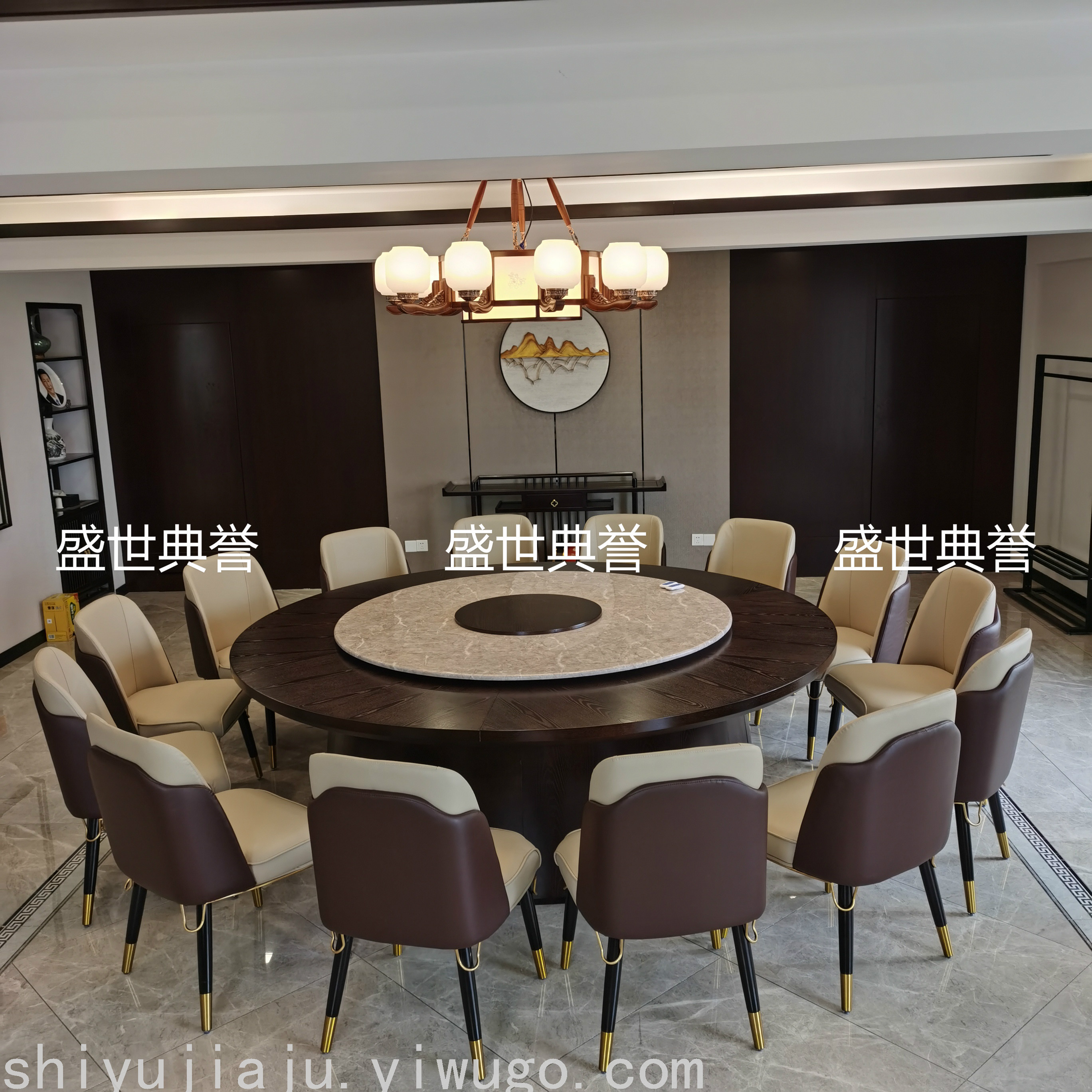 湖州度假酒店电动桌国际饭店包厢大理石电动转盘餐桌轻奢实木家具
