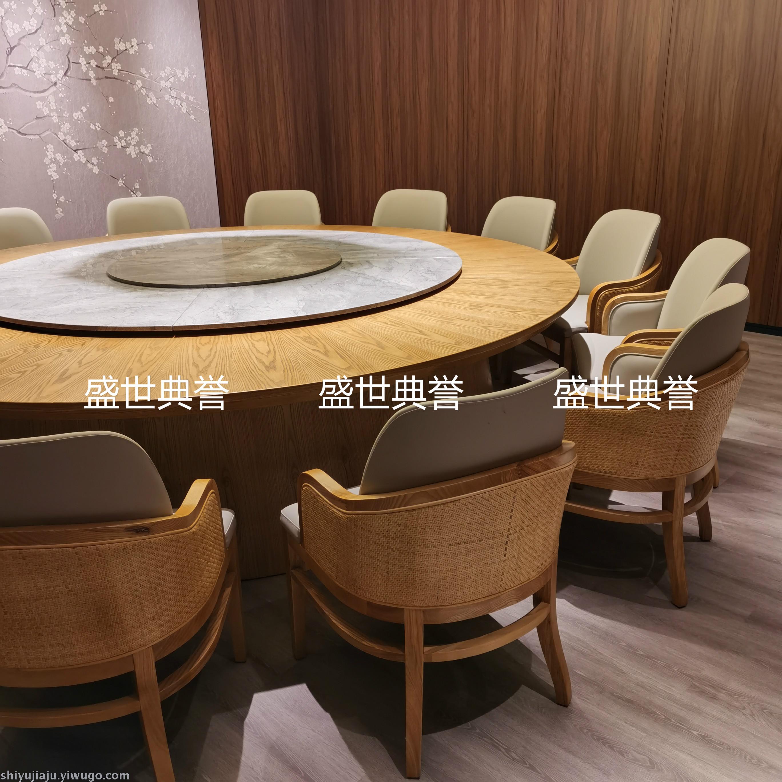 白山星级酒店豪华包厢大理石电动转盘餐桌定做宾馆轻奢实木电动桌